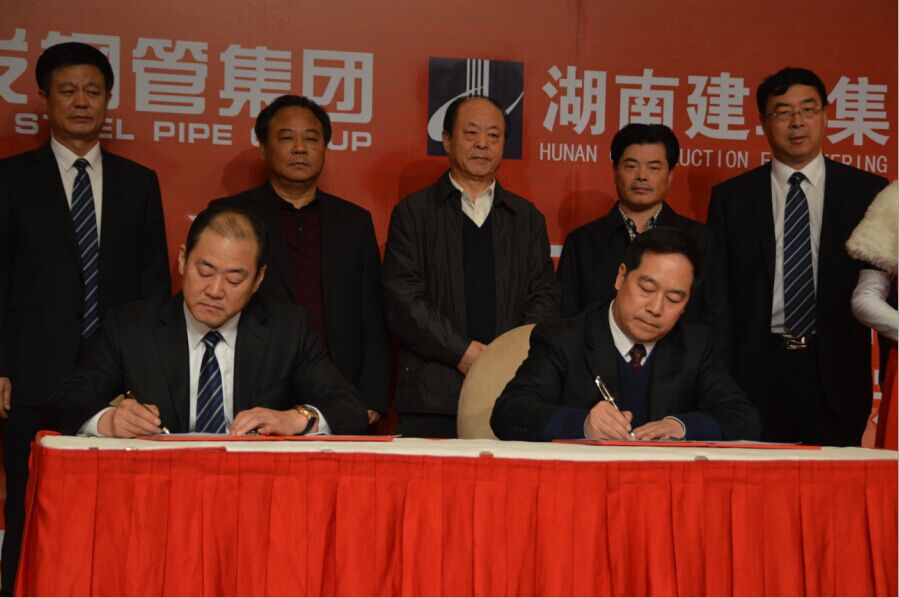 大会的压轴环节是战略合作签约仪式。在全体参会嘉宾的共同见证下,友发钢管集团副总裁徐广友、湖南建工集团常务副总经理刘少兵代表各自公司签订了战略合作协议。双方将按照“优势互补,互利共赢,共同发展”的原则,充分发挥各自的资源优势,切实推进双方的共赢。